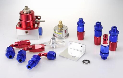 Универсальный регулятор давления топлива. Предназначен для повышения давления топлива в топливной рейке. Материал корпуса и фиттингов - анодированый алюминий. Цвет комбинированный - синий/красный/серебряный. Комплектуется внешним манометром, заполненным демпфирующей жидкостью. Установочное оборудование в комплекте. Отличные производительные характеристики и внешний вид.