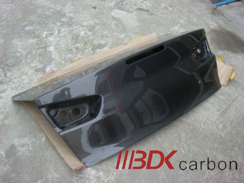 Карбоновая крышка багажника для а/м Mitsubishi Lancer EVO X. Материал изделия - сухой карбон, покрытый финишным слоем прозрачного гелькоута. Плетение углеволокна - твилл ("ёлочка"). Высокое качество, низкий вес и превосходный внешний вид. Крепление осуществляется на двусторонний скотч или герметик.