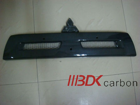 Карбоновая решетка радиатора, выполнена единым целым с эмблемой, для Mitsubishi Lancer EVO X. Материал изделия - сухой карбон, покрытый финишным слоем прозрачного гелькоута. Плетение углеволокна - твилл ("ёлочка"). Высокое качество, низкий вес и превосходный внешний вид.