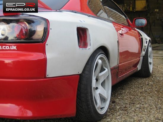 Комплект пластиковых расширителей M Sports Style (+50мм) на задние крылья для а/м Nissan Silvia S13. Материал изделия - высококачественный стеклопластик, покрытый финишным слоем белого гелькоута. Отличное качество, установка полностью bolt-on без каких либо доработок и переделок.