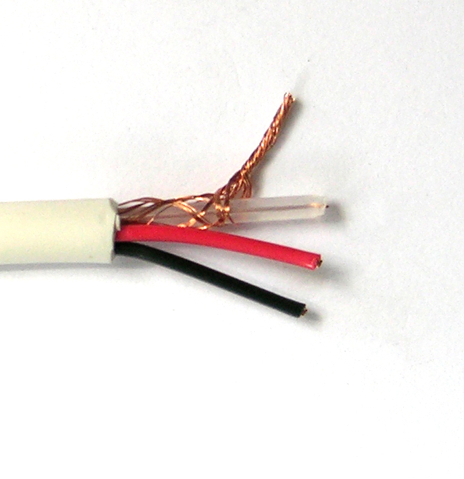 Комбинированный кабель для передачи телевизионных сигналов в системах видеонаблюдения с одновременным подключением питания и/или передачи сигналов управления. Конструкция: - радиочастотный элемент РК 75-2-111, состоящий из однопроволочного медного внутреннего проводника 1х0,37 мм с изоляцией из сплошного П/Э диаметра 2,2 мм и внешним проводником в виде оплетки из медных проволок, без наружной оболочки; - жилы питания сечением 0,35 мм кв; - в общей оболочке из светостабилизированного П/Э ( для внутренне прокладки). Размеры кабеля 5,7 мм. |