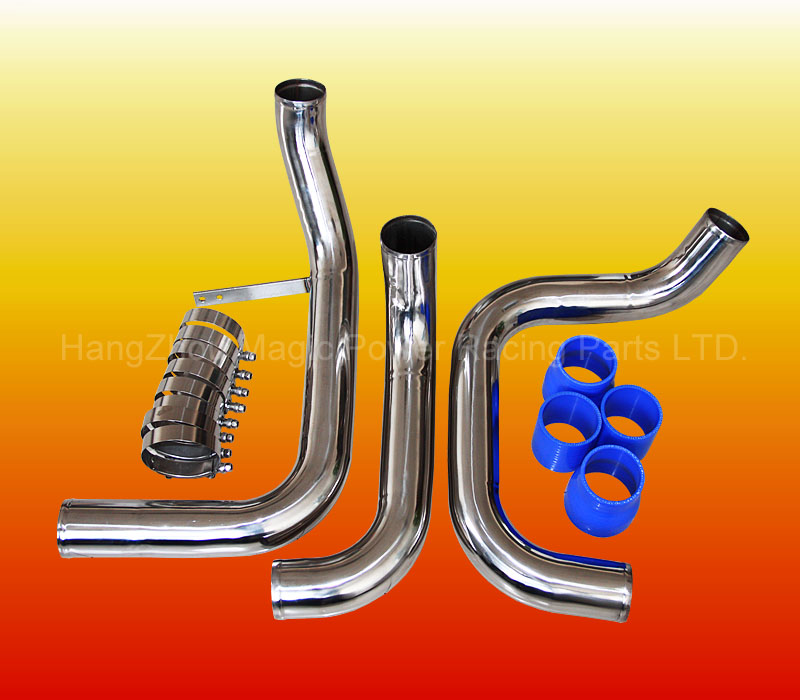 Болт-он пайпинг кит для а/м Nissan Skyline RB25. В комплект входят стальные патрубки, армированные силиконовые соединители и хомуты. Цвет силикона - синий.