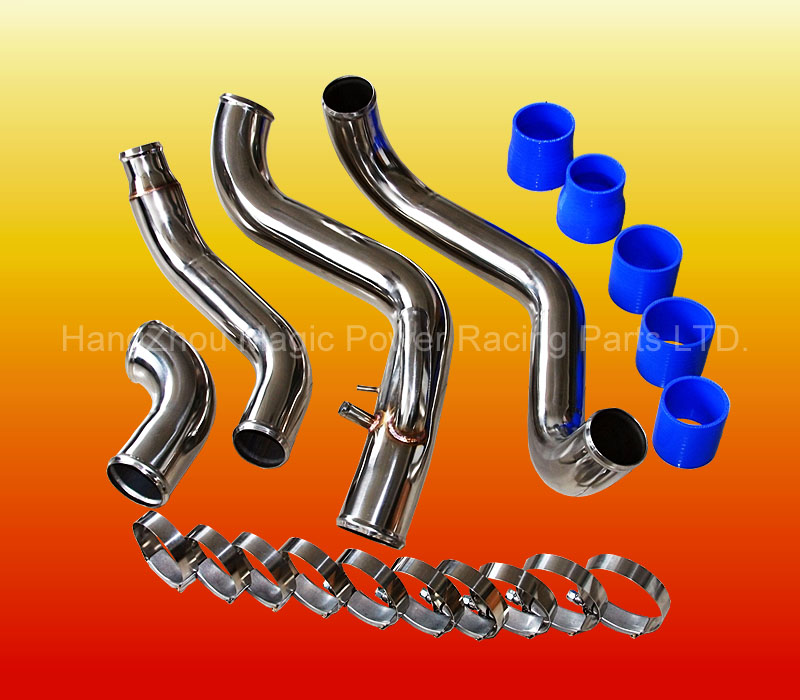 Болт-он пайпинг кит для а/м Nissan Silvia S14/S15. В комплект входят алюминиевые патрубки, армированные силиконовые соединители и хомуты. Цвет силикона - синий.
