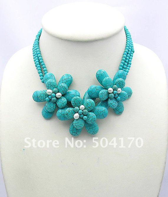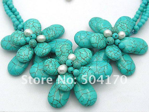 ДОПОЛНИТЕЛЬНАЯ ИНФОРМАЦИЯ Красивое бирюзовое ожерелье с речным жемчугом в 3 нити с цветочным дизайном Материал: натуральная бирюза и речной жемчуг Особый стиль уникального дизайна