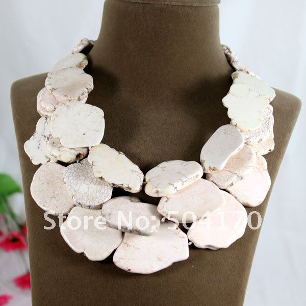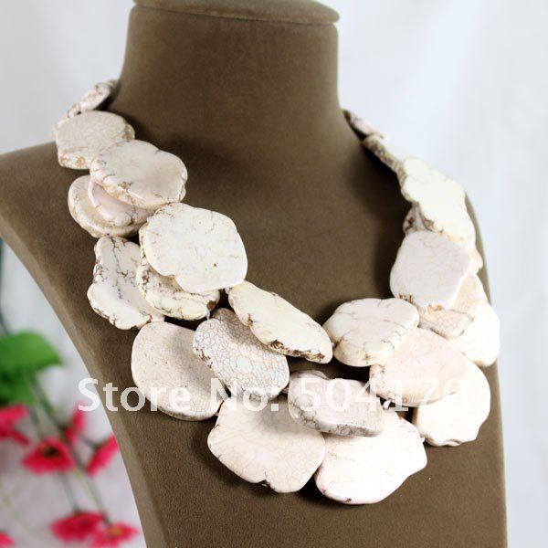 Ожерелье в 3 ряда из крупной белой бирюзы