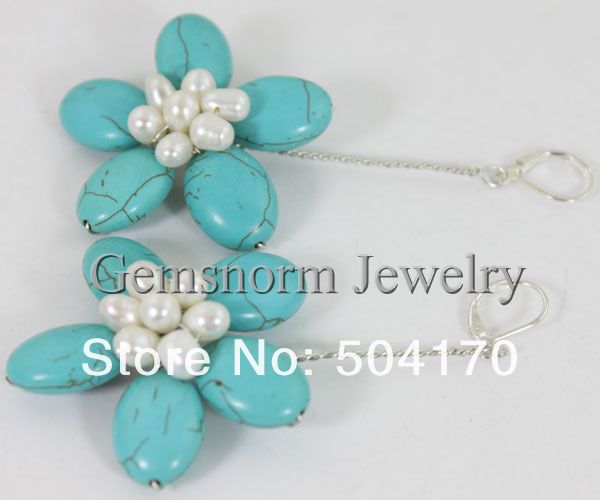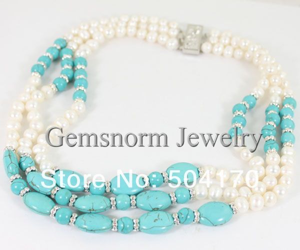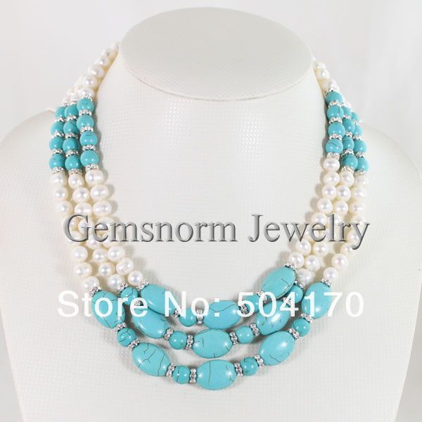|  | | Набор. Ожерелье из бирюзы и белого жемчуга с серьгами |