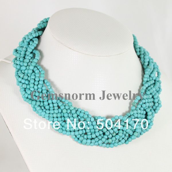Модное ожерелье из бирюзы. Величина бусин 2 мм.