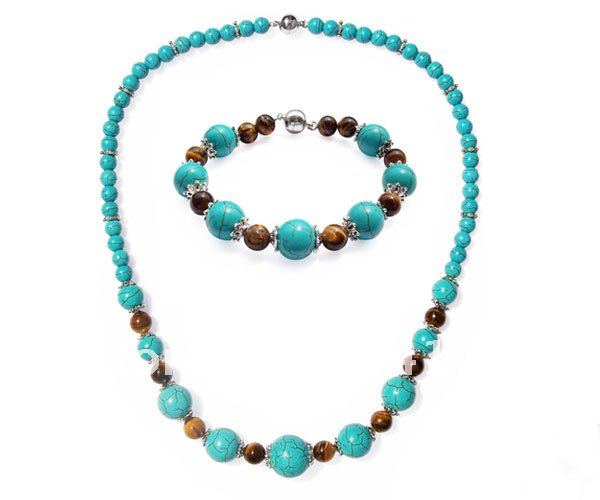 | | Набор из бирюзы и тигрового глаза (браслет, ожерелье) |