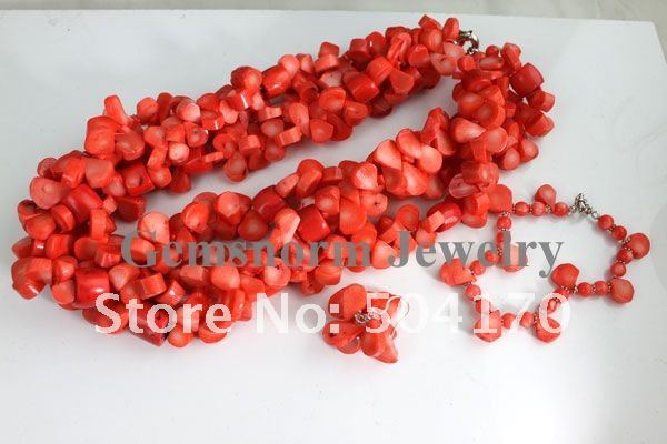 Справочная 09 | Набор из розового коралла (ожерелье, серьги, браслет)