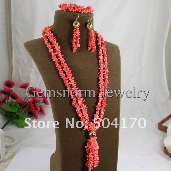 Набор из коралла (ожерелье, серьги, браслет)