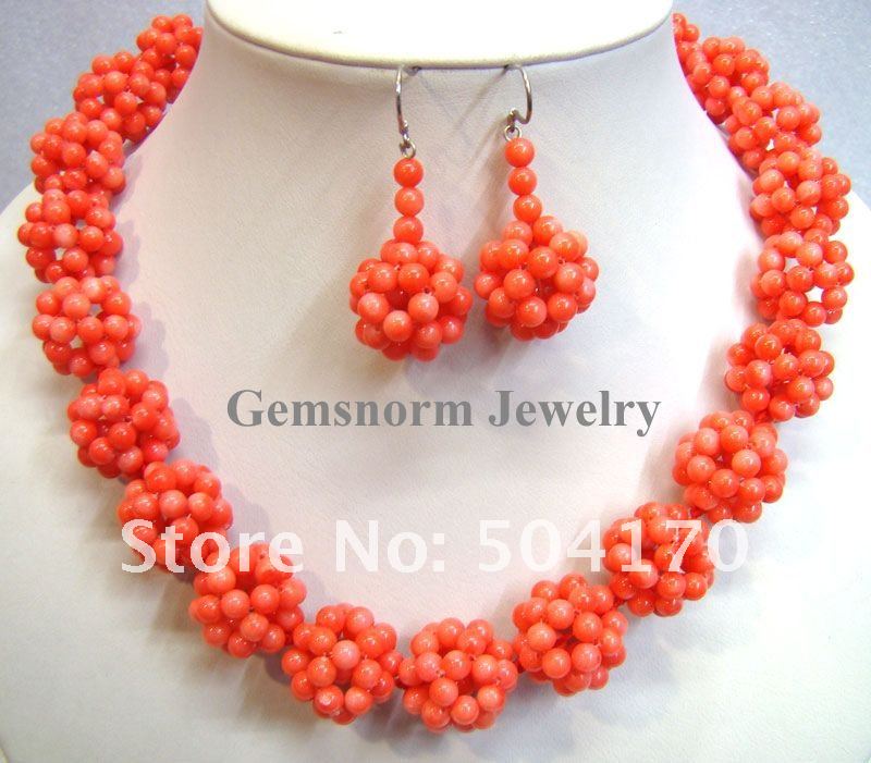 |  | | Набор из розового коралла (ожерелье, серьги) |
