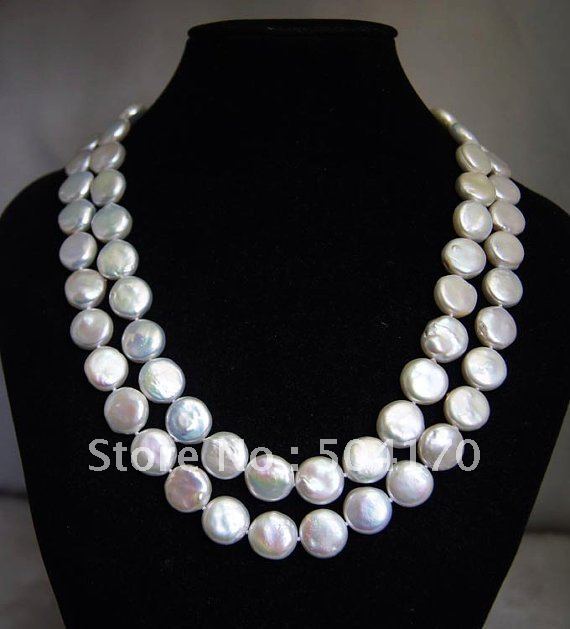 Ожерелье в 2 нити из 12 мм жемчуга, форма в виде монеты