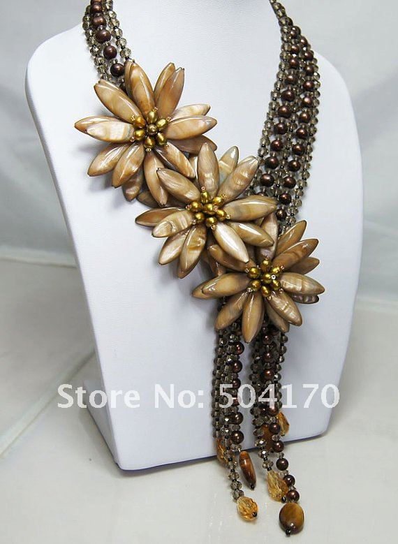 ДОПОЛНИТЕЛЬНАЯ ИНФОРМАЦИЯ Винтажное ожерелье коричневого цвета с золотом с цветочным дизайном Материал: речной жемчуг, полудрагоценный камень Ручная работа Уникальный дизайн