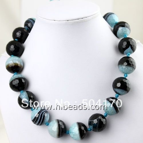 ДОПОЛНИТЕЛЬНАЯ ИНФОРМАЦИЯ Ожерелье из 16 мм бусин с фацетом черно-голубого агата Материал: натуральный полудрагоценный камень Ручная работа Уникальный дизайн. Высокое качество.