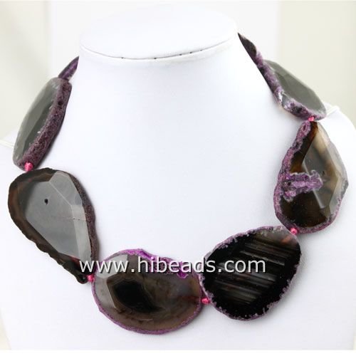 Ожерелье из пластин темно коричневого агата с сиреневой кромкой
